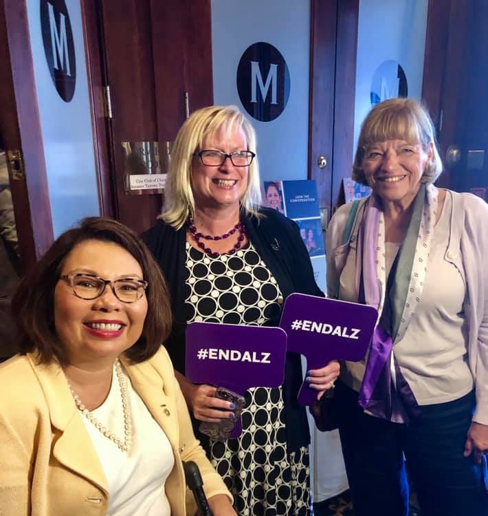 Here, Cheryl McNamara and I practically stalked Senator Tammy Duckworth to get this photo with her. The Illinois senator has been a wonderful supporter of all things Alzheimer’s over the years. Photo credit: provided by author. And I’ve gotten so good at it that recently, when I randomly ran into a local congressman at Panera on a regular-ole Saturday, I was able to be another reminder to him about the Alzheimer’s Association and the work we need him to do in DC.